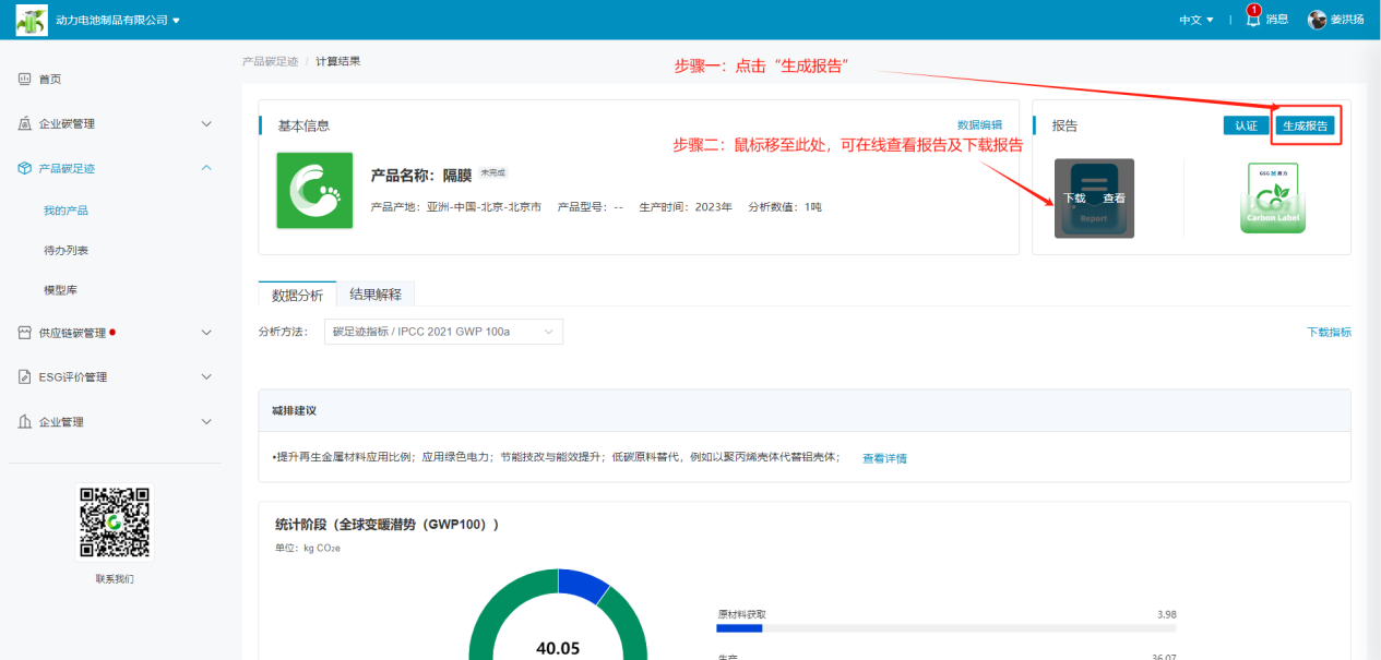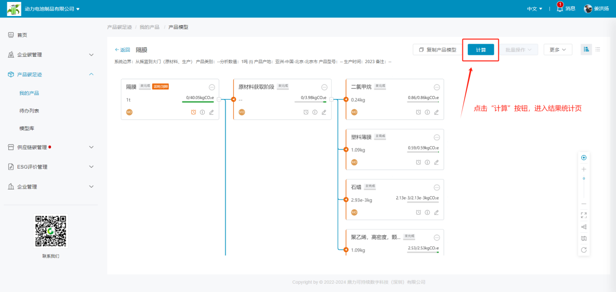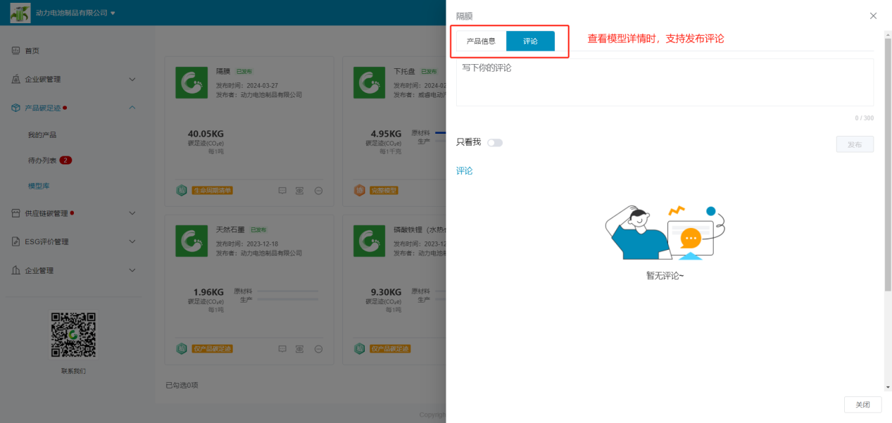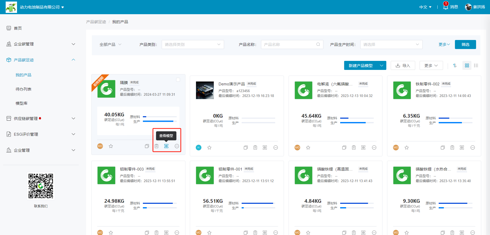 - 产品碳足迹:仅支持查看产品模型的碳排放情况;
