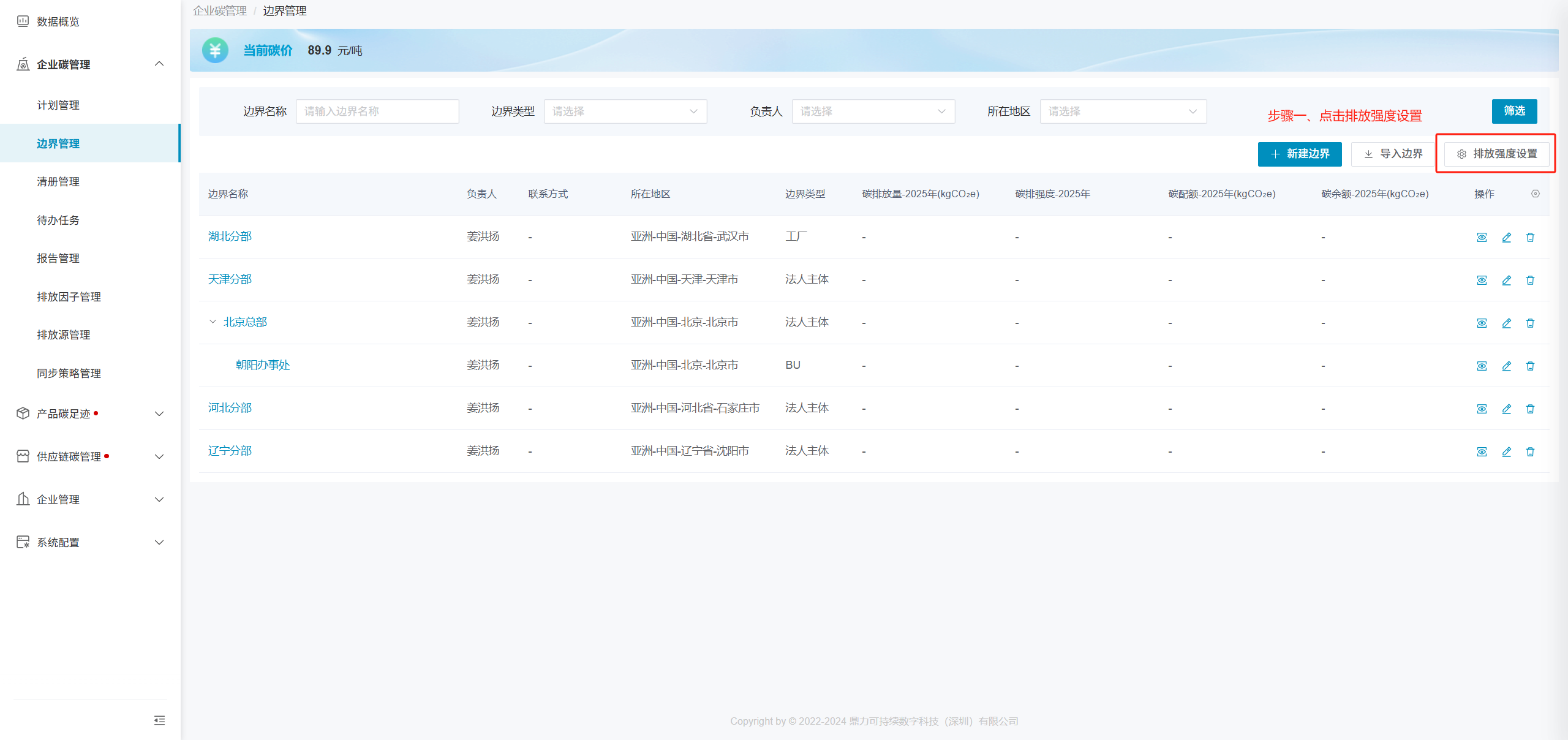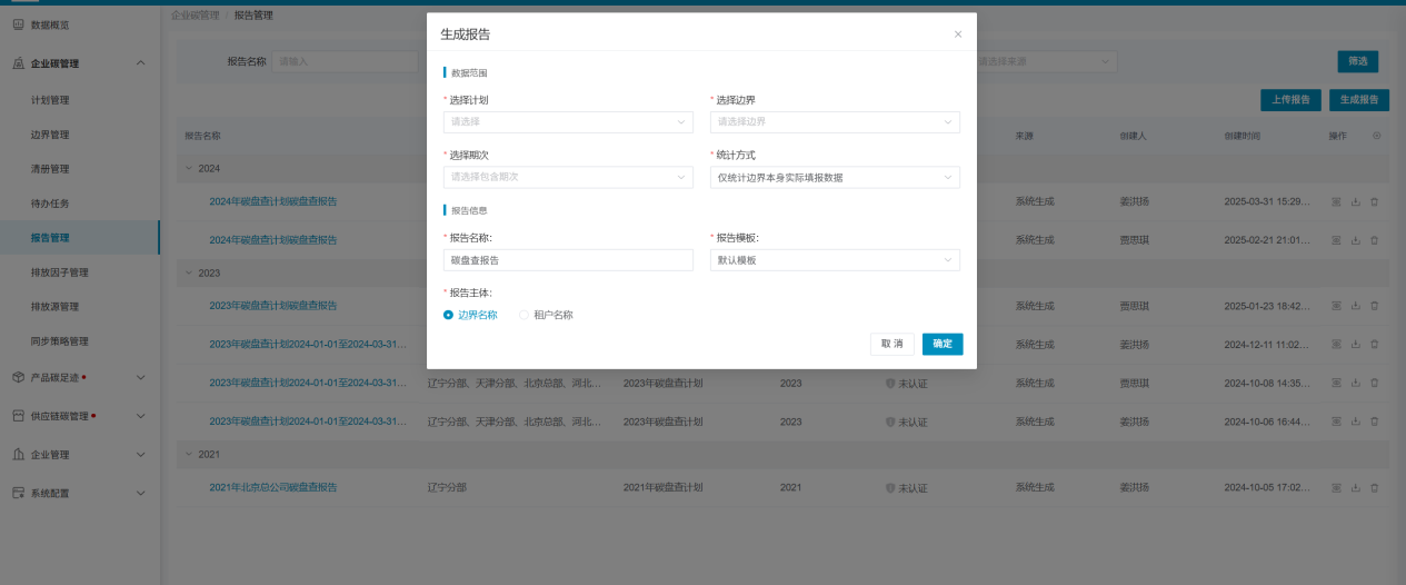 - 数据类型:仅统计边界本身实际填报数据、仅统计边界本身碳盘查数据;