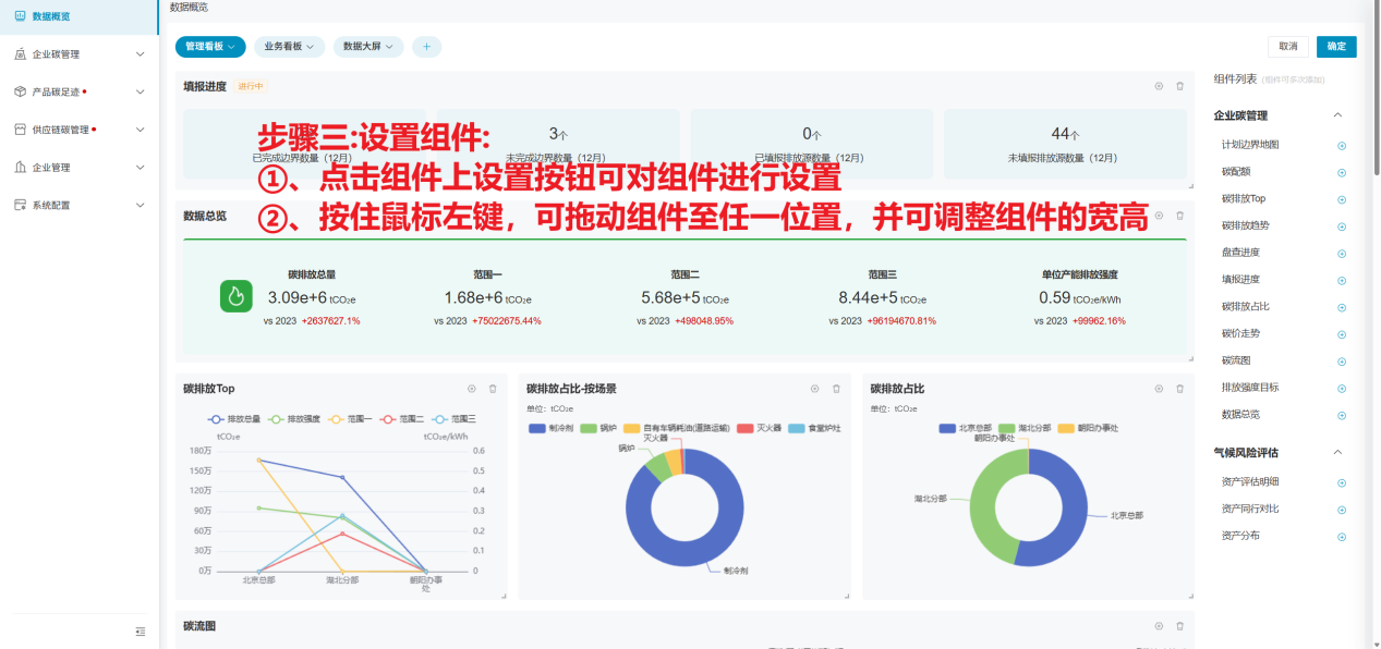 通过多种数据统计维度、统计方式、展现方式的组合,并以可视化呈现的方式,更加直观的向用户传达企业的碳排放情况;