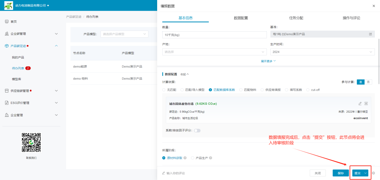 节点负责人:支持填报活动数据(数量)、选择排放因子(计算依据),同时支持数据审核;