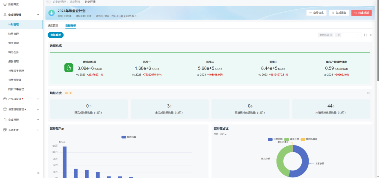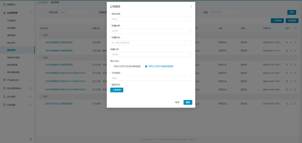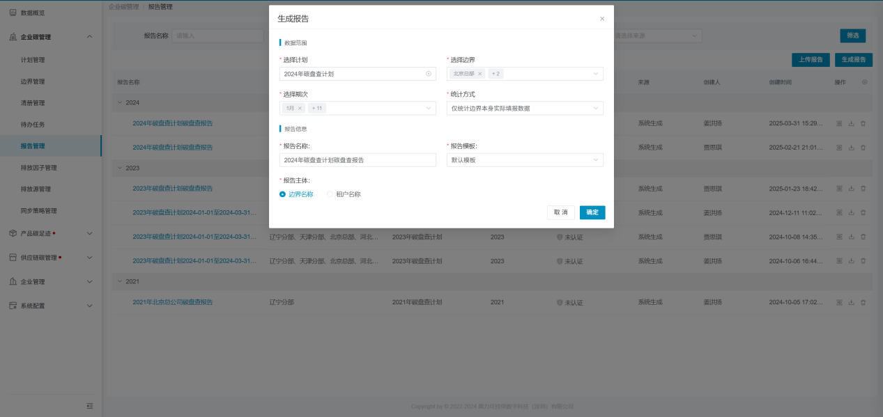 - 数据类型:仅统计边界本身实际填报数据、仅统计边界本身碳盘查数据;