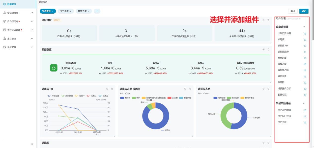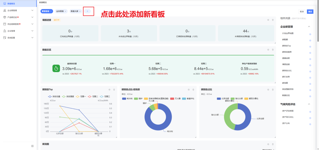 通过多种数据统计维度、统计方式、展现方式的组合,并以可视化呈现的方式,更加直观的向用户传达企业的碳排放情况;
